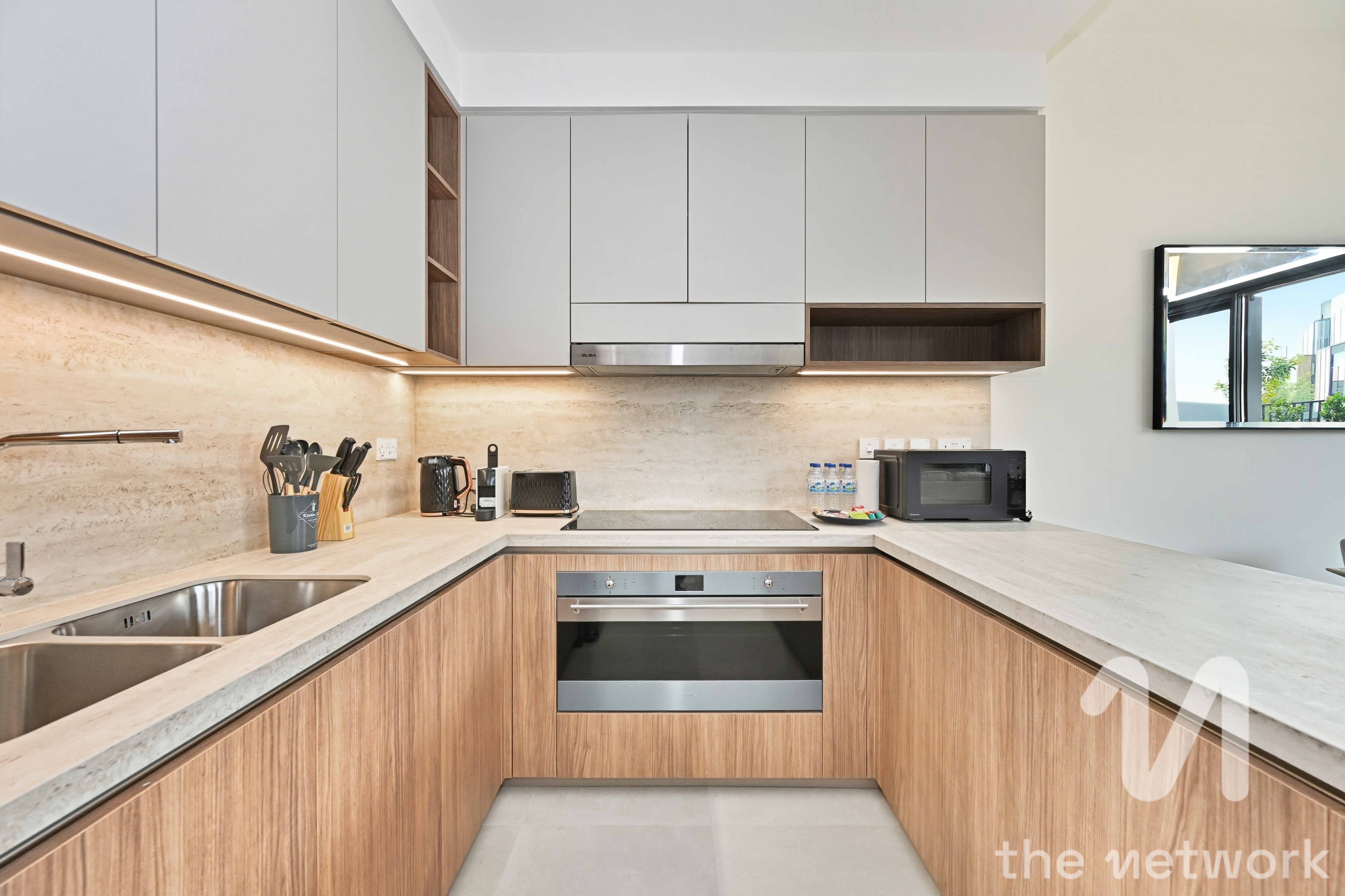 - Modern open-plan kitchen and living area